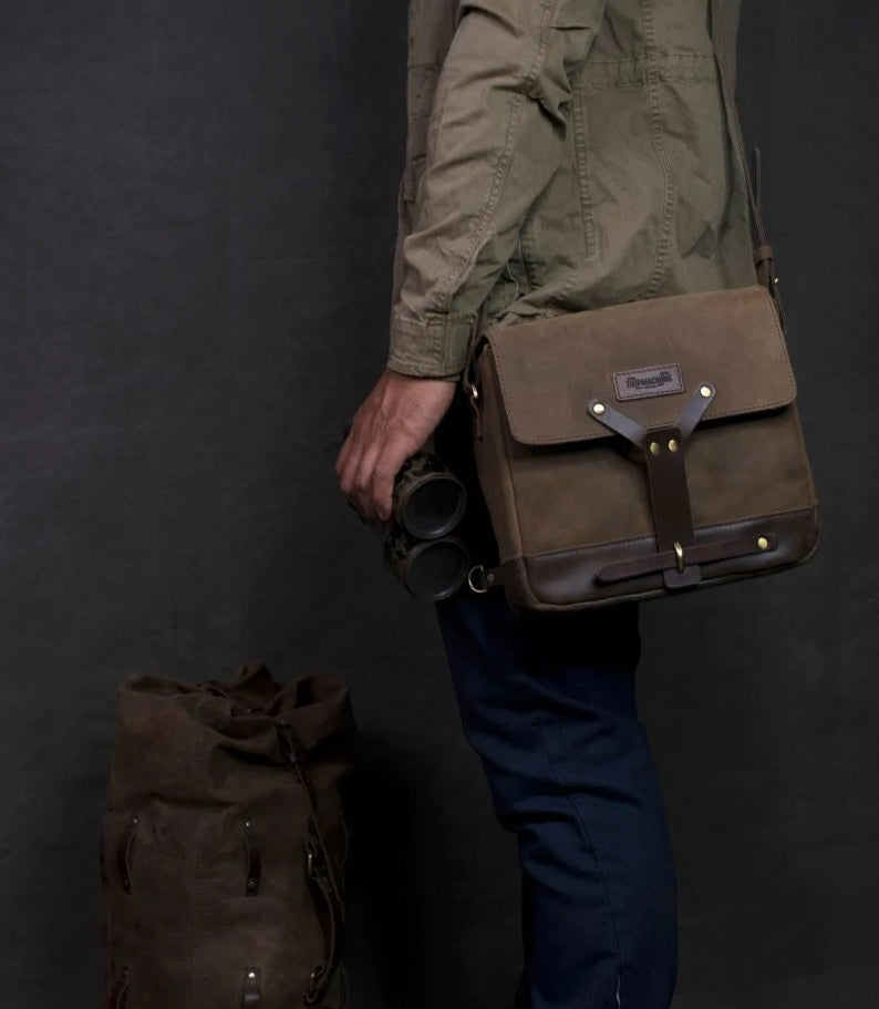 Die Umhängetasche ist von der Schweizer Munitionstasche aus dem Zweiten Weltkrieg inspiriert. Tripmachine hat die Tasche aus den besten Materialien handgefertigt, damit sie auch einen Krieg überstehen kann. Sie ist eine ideale Tasche für den Alltag und bietet Platz für ein iPad, Motorradbekleidung und sogar ein paar T-Shirts. Sie hat zwei kleine Taschen innen und eine auf der Rückseite.